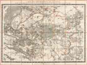 En 15 sections montées sur toile et pliées, formant une carte de 1,21 x 1,40 m ; sous chemise et étui de papier vert marbré de l’époque.