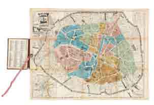 NAVLET (Victor). Paris. Plan et panorama . Paris, Bouquillard , [circa 1850]. En 32 sections montées sur toile et pliées, formant un plan de 630 x 760 mm.