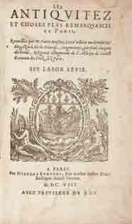 (Bonnardot, Gilles Corrozet et Germain Brice, p. 33.- Lacombe , Catalogue , n° 823.- Poëte, Les Sources de l’ histoire de Paris, p. 19).
