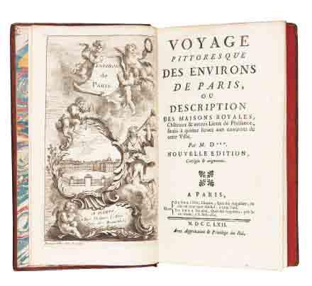 [DEZALLIER D’ARGENVILLE (Antoine-Nicolas)]. Voyage pittoresque des environs de Paris ou Description des maisons royales, châteaux & autres lieux de plaisance, situés à quinze lieues aux environs de cette ville. Paris, de Bure, 1762.
