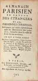 Almanach parisien en faveur des étrangers et des personnes curieuses . Paris, Duchesne, sans date [1762].
