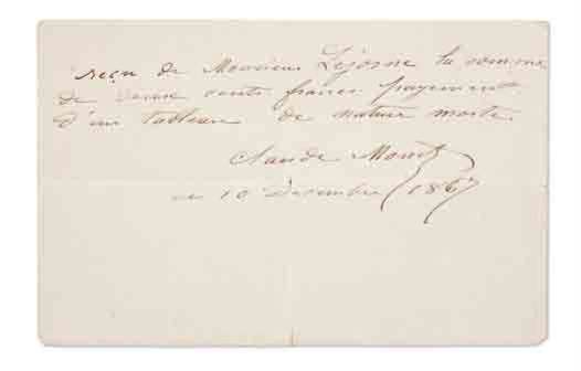 Pièce autographe signée, 10 décembre 1867 ; 1 page obl. in-8.