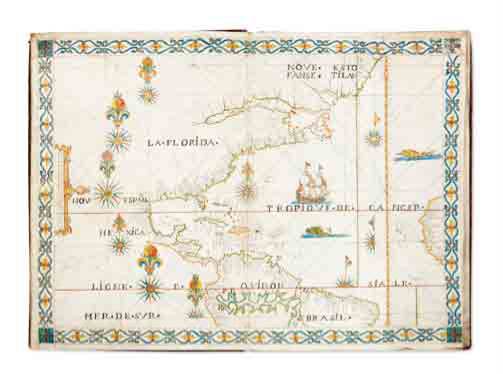 comprend des roses des vents, des représentations de navires,