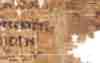 rares fragments d’un papyrus conservant deux parties de colonnes adjacentes de l’iliade (chant ii, 794-804 et 830-845) : la déesse iris apparaît