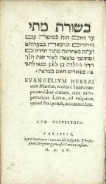 25 BIBLE. — [En hébreu]. Evangelium Hebraicum Matthaei. — Evangelium Matthaei ex Hebraeo fideliter reddi-