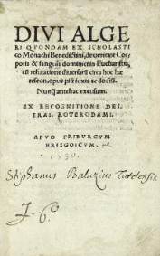 Éditions princeps données par Érasme des textes majeurs d'Alger de Liège et de Guitmond, deux grands adversaires