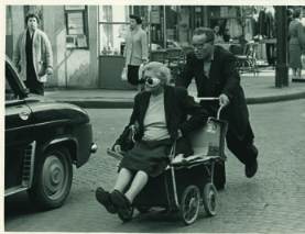 406. MARTIN André. DAME ÂGÉE DEVANT UNE AFFICHE AGUICHEUSE. PHOTOGRAPHIE ORIGINALE.