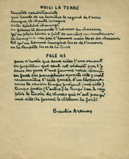 Arenas : Voici la terre (9 vers) et Page