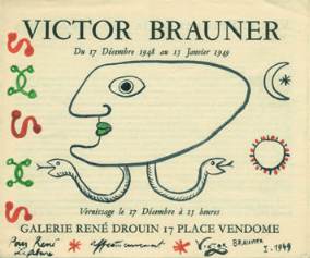 [BRAUNER Victor]. EXPOSITION VICTOR BRAUNER. CARTON D’INVITATION. Paris, Galerie de France,