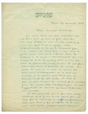 - Lettre autographe signée de André Breton à Francis Dumont, Paris, 26 décembre 1948, une page in-4 et 1/4 :