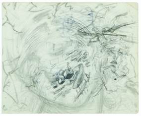 Au recto, dessin à l’encre et au crayon représentant deux têtes de femmes, de la série des « Tourbillons ».