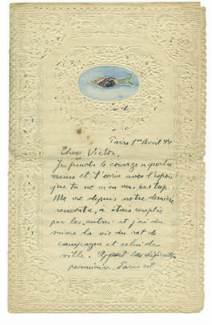 Lettre autographe datée à l’encre sur papier à dentelles en