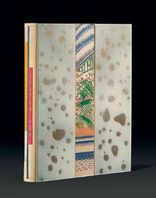 de papier tacheté or laissant voir l’illustration de la couverture, non rogné, couverture et dos, étui