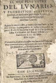 176 CORTÈS (Géronimo). El non plus ultra del lunario, y pronostico perpetuo general y particular para cada Reyno,