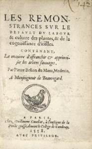 10 BELON DU MANS (Pierre). Les Remonstrances sur le default du labour & culture des plantes, & de la cognois-