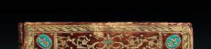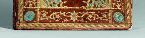 encadrement de filets et roulettes dentelées dorés ornant les plats, fleurons et palmettes