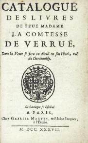 264 VERRUË. — Catalogue des livres de feue Madame la
