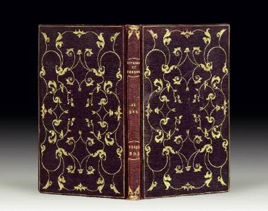 Le décor de la reliure, harmonieux, savamment construit et incluant des fers végétaux, s'inspire de l’art persan et rappelle