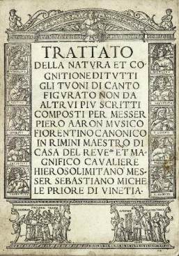 1 ARON (Pietro). Trattato della natura et cognitione di tutti gli tuoni di canto figurato. S.l.n.d. [au colophon] :