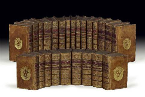tomes XIII-XXI, et in-8 pour les tomes XXII-XXIV], veau fauve, triple filet doré en encadrement, armoiries au