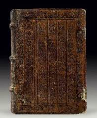 In-4, basane brune estampée à froid sur ais, bordure et décor central compartimenté en colonnes réalisés au moyen