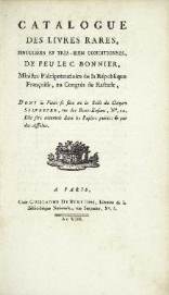 241 BONNIER. — Catalogue des livres rares, singuliers et très-bien conditionnés, de feu le C. Bonnier, Ministre