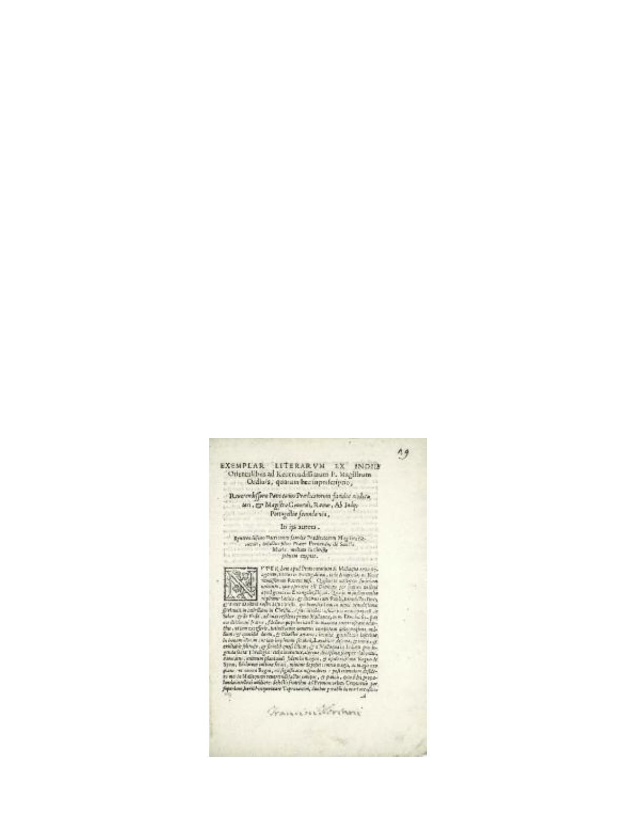 343 SANTA MARIA (Fernando de). Exemplar literarum ex Indiis Orientalibus ad Reverendissimum P. Magistrum […].