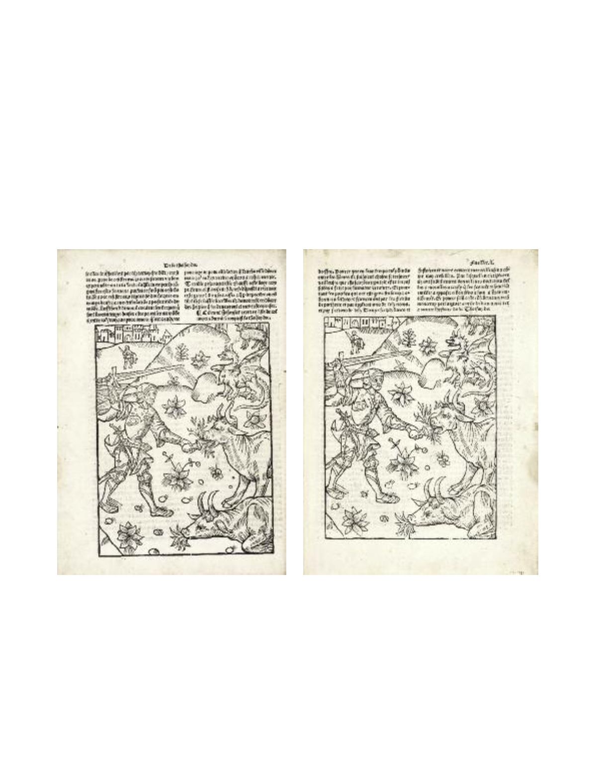 proviennent des livres d'heures de Simon Vostre. Le plus beau bois de l'ouvrage représente Jason qui combat des monstres