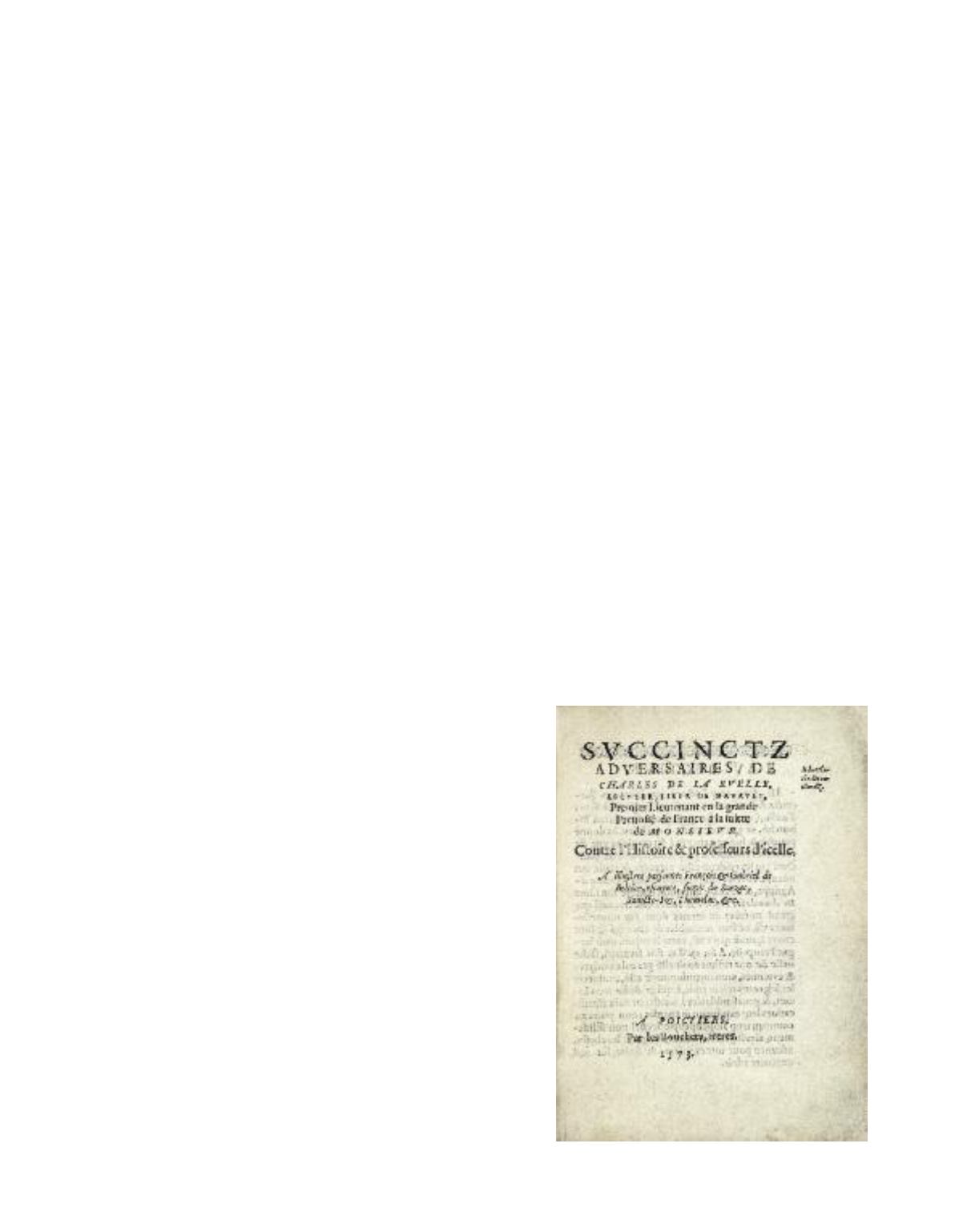 236 LA RUELLE (Charles de). Succinctz adversaires contre