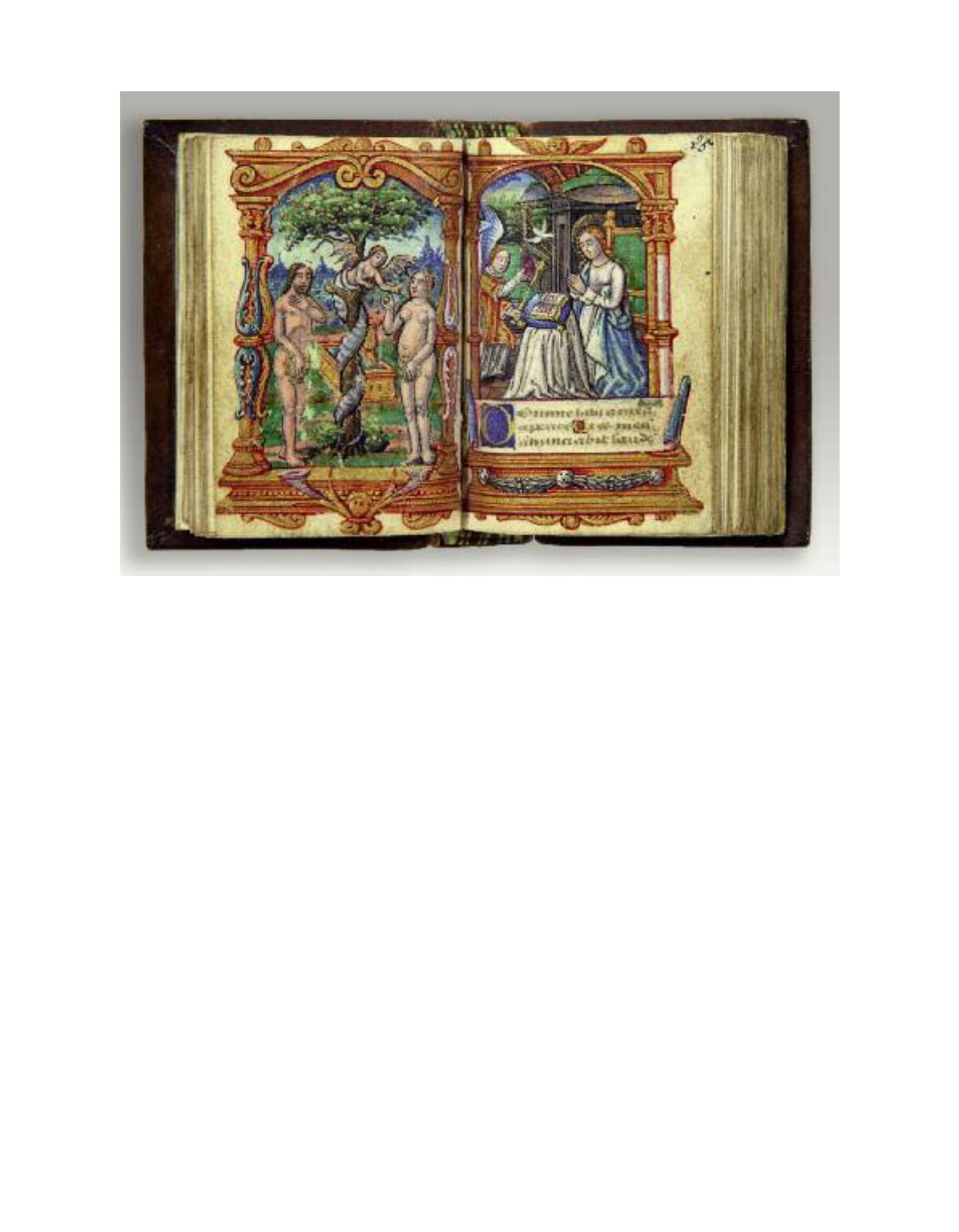 Les peintures à pleine page sont inscrites dans un encadrement architectural doré de type Renaissance englobant la