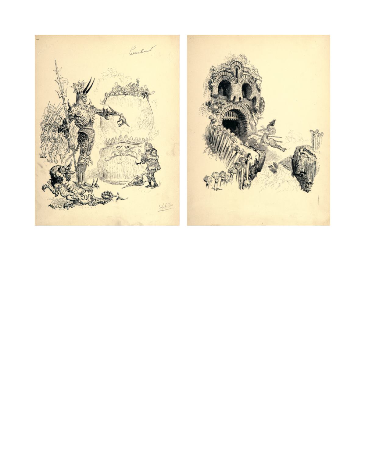 59 ROBIDA. — Fabliaux & Contes du Moyen-Âge. 115 dessins originaux, réunis dans une reliure-portefeuille in-4,