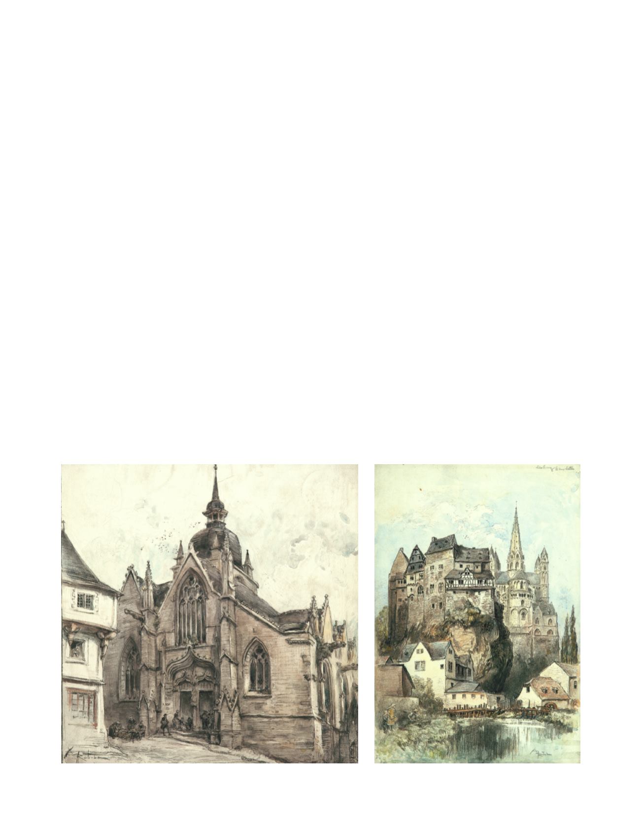 Frontispice gravé à l'eau-forte montrant La Pfalz sous le Burg Gutenfels et plus de 200 illustrations lithographiées dans