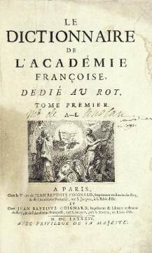 100 ACADÉMIE FRANÇAISE. Le Dictionnaire de l'Académie françoise, dédié au roy.