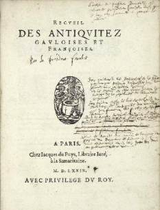 145 FAUCHET (Claude). Recueil des antiquitez gauloises et françoises.