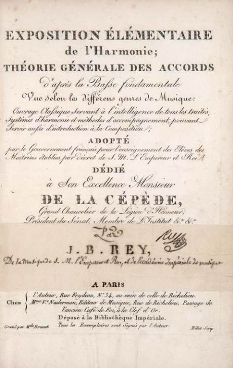 158 MUSIQUE. – REY (J. B.). Exposition élémentaire de l'Harmonie ; théorie générale des accords d'après la basse