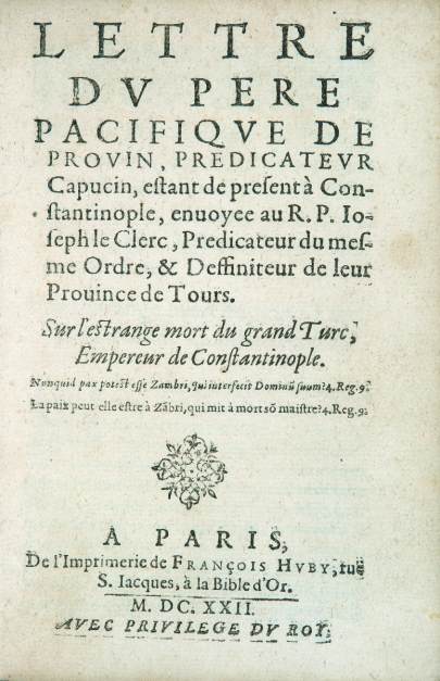 Capucin, estant de present à Constantinople, envoyee au R. P. Ioseph le Clerc, Predicateur du mesme Ordre, &