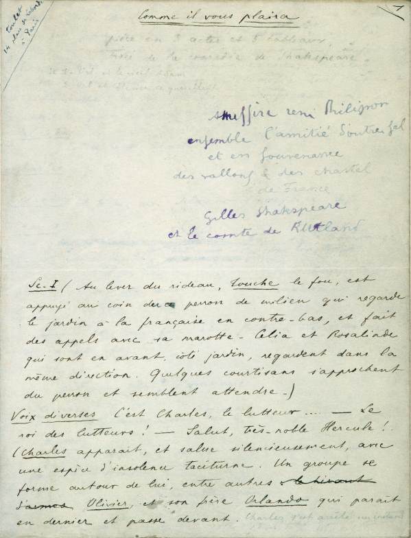 Comédie intitulée « Comme il vous plaira » comportant ratures et corrections, Toulet a ajouté au crayon sous le titre :