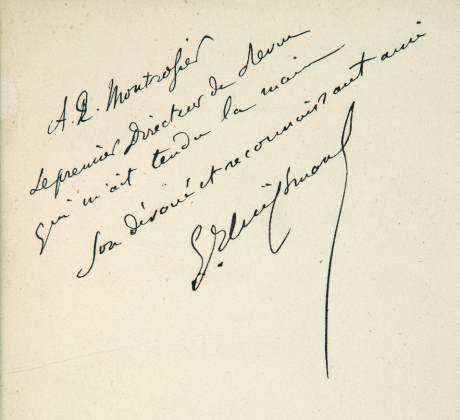 Envoi autographe signé de l'auteur à Eugène Delâtre (1864-1938), graveur du portrait en frontispice.