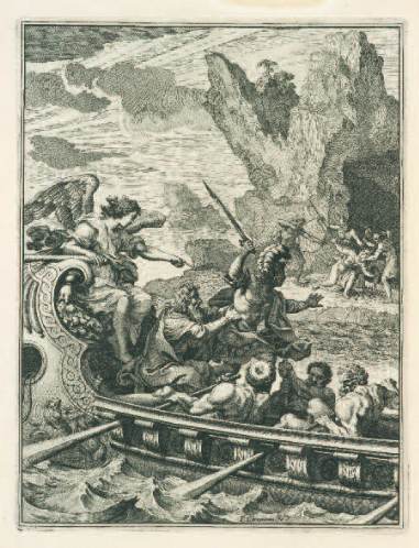 Les sujets de cette intéressante illustration sont très mouvementés : combat avec un ours, bataille navale, etc. Des