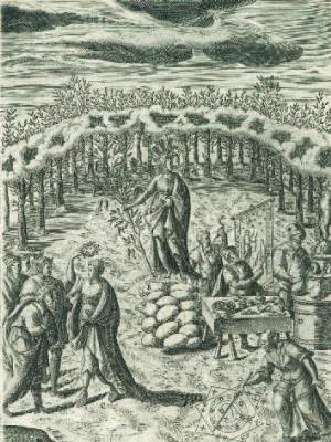 en représentant par des personnages les vertus et les vices, procédé typique de l'art de mémoire