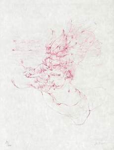 Gravure en rouge signée au recto par Bellmer, gravée par Cécile Deux de la série de Chants de Maldoror, épreuve sur