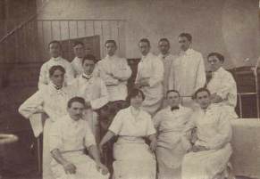 Tirage original d’époque représentant André Breton en blouse blanche au service de la Pitié en 1916 parmi d’autres