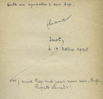 Hans Arp, Imst le 14 octobre 1921 où j’arrive trop tard pour vous voir, Arp, regrets éternels !