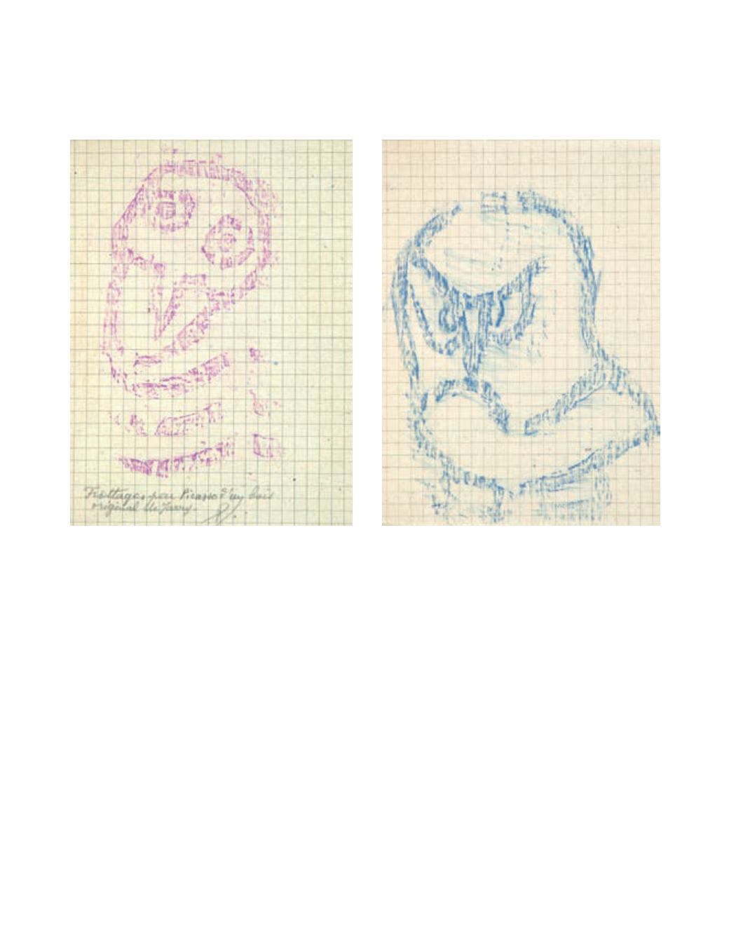 , (l’un au crayon rose, l’autre au crayon bleu), et de deux bois originaux de Jarry. L’un d’eux porte