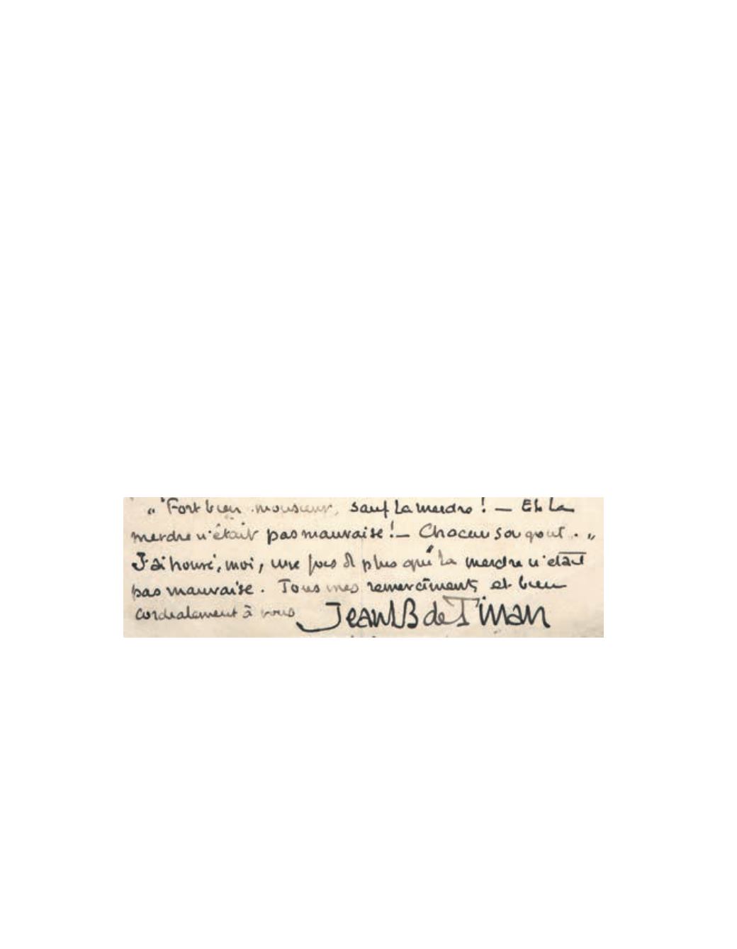 Très intéressante lettre adressée à Jarry et entièrement consacrée à