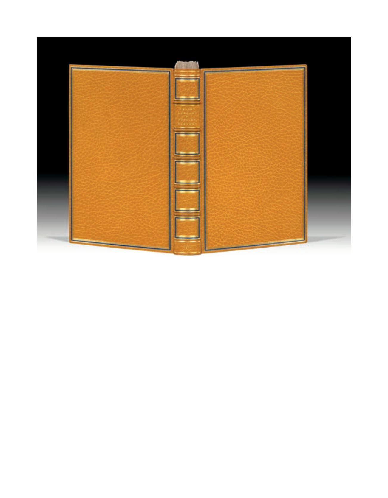 dos lisse, doublure et gardes de daim beige, tranches dorées sur témoins, couverture, chemise