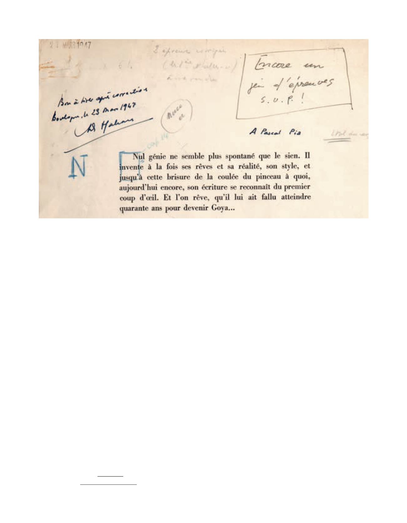 composteur 21 mars 1947, avec corrections autographes et bon à tirer autographe, signé et daté