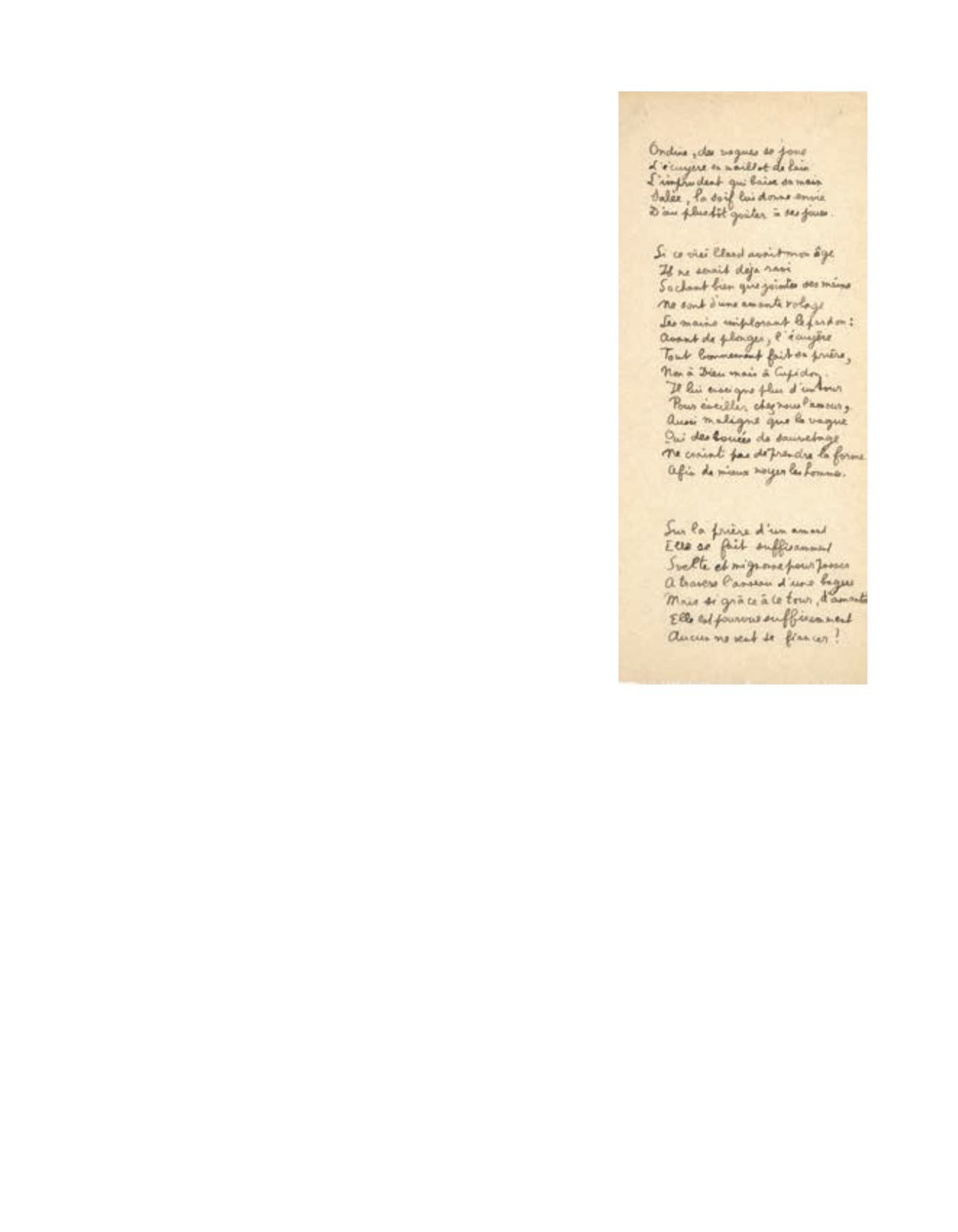 Beau poème de 26 vers, sans rature ni correction, reproduit parmi