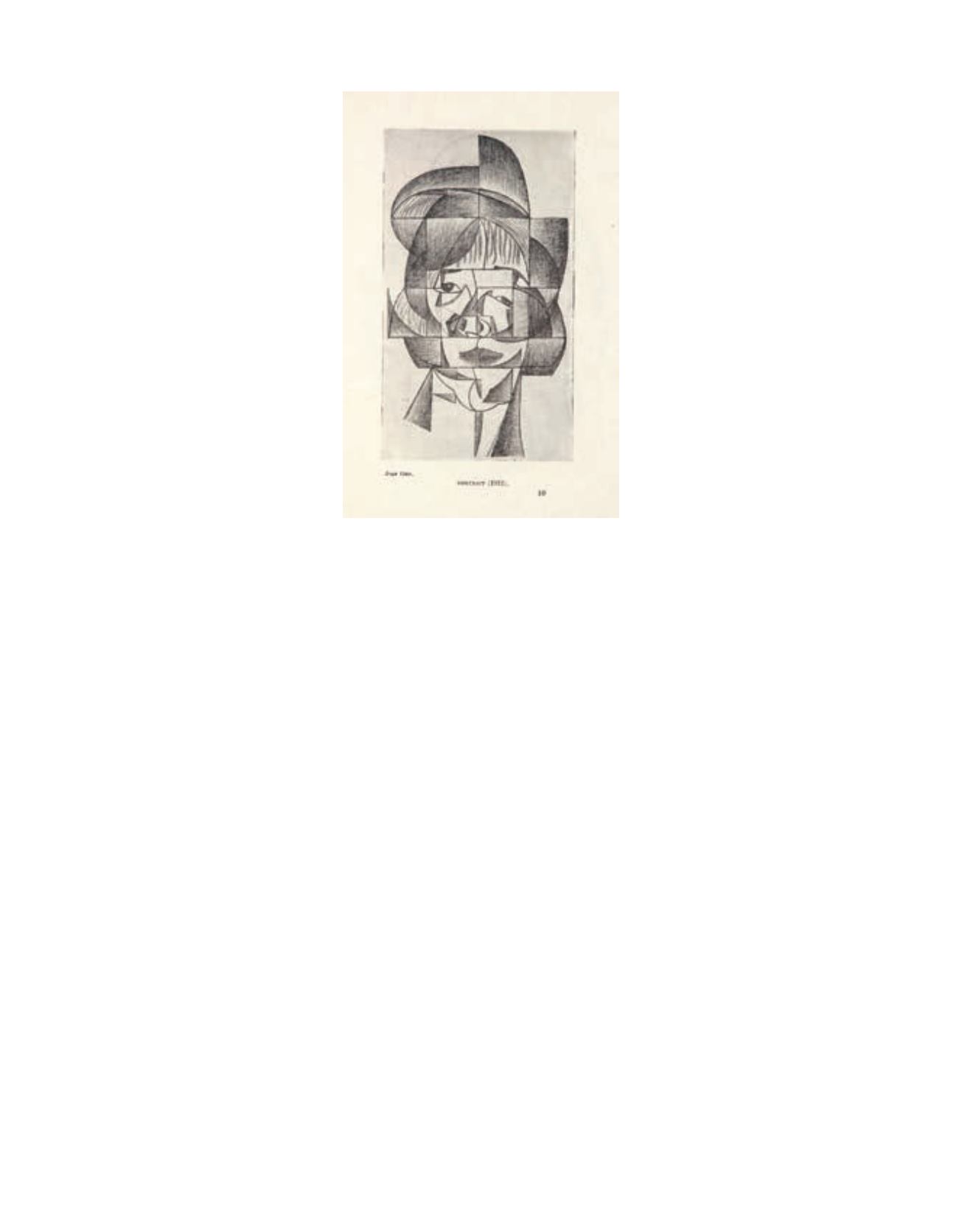 arlequin devant une bouteille d’alcool posée sur une table, suivie de cette légende autographe :