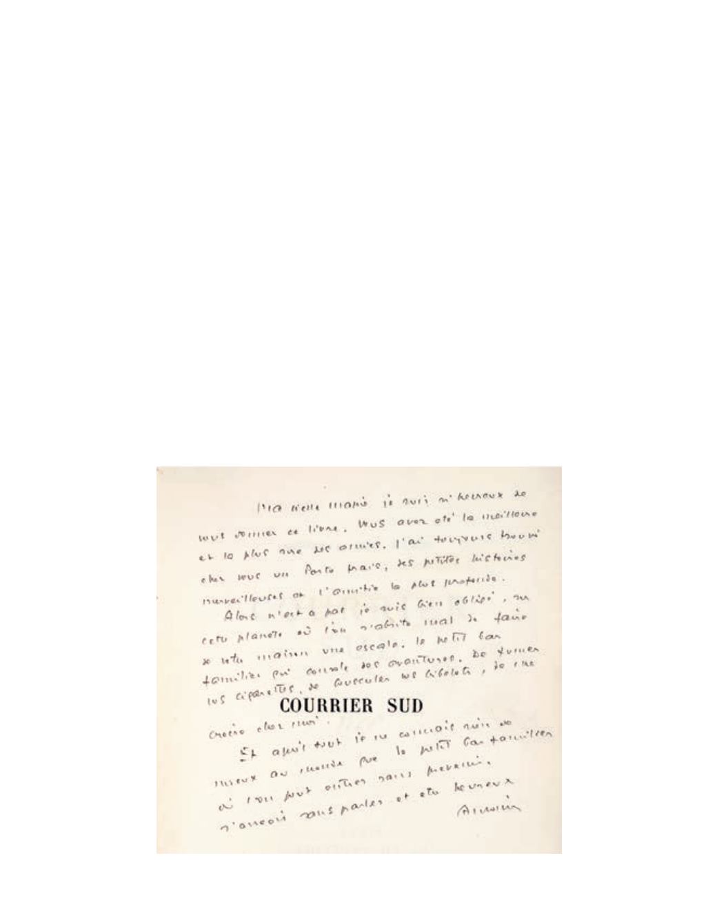 La destinataire de cet envoi est très probablement Lucie-Marie Decour (1900-1989), à qui Saint-Exupéry